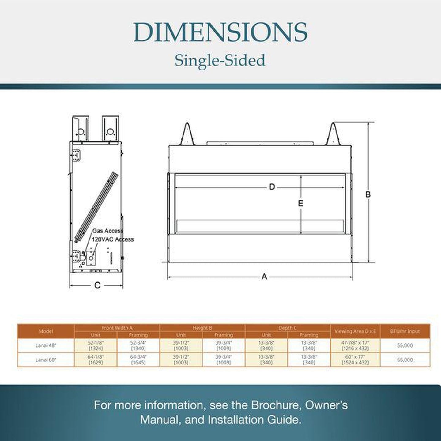 - Modern linear design in 48", 60", and stunning 48" double-sided models
