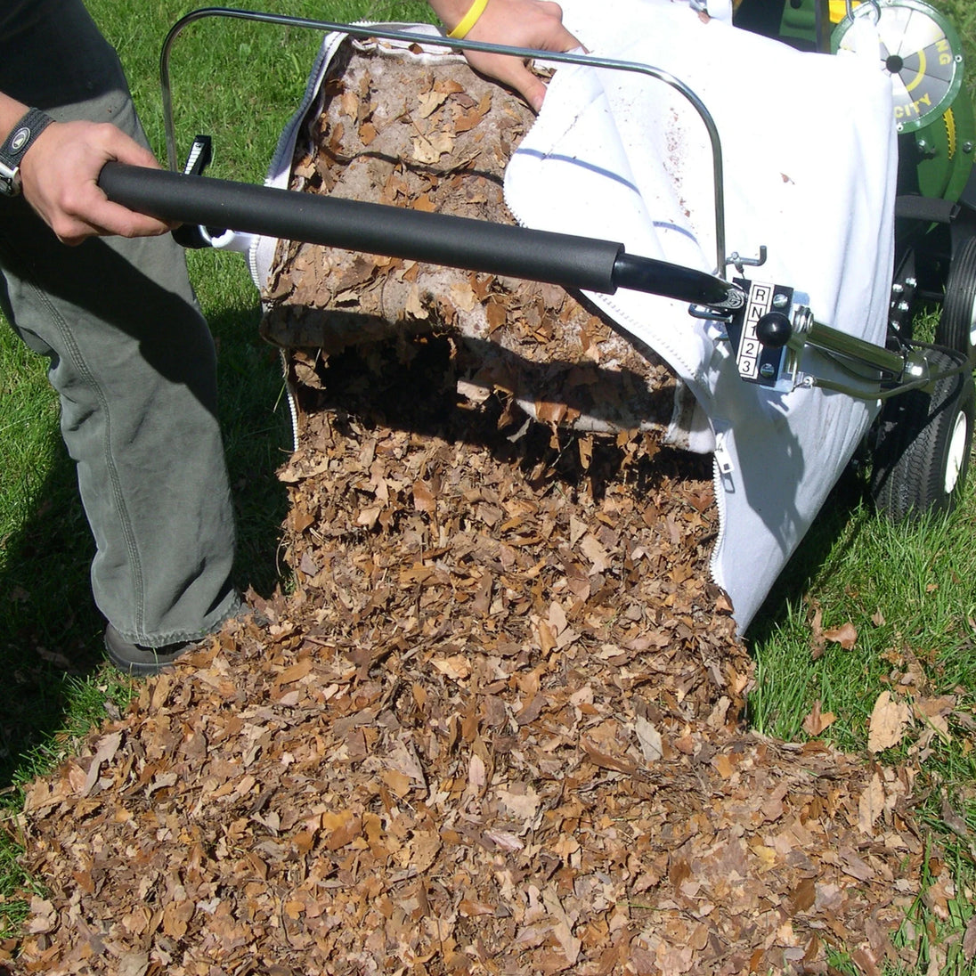 The wide 25” vac path and the large 4-bushel collection bag combine to make quick work of your clean-up needs.  Six height adjustment settings allow you to position the vac snout at the perfect height for any application.  The VCB’s also come standard with a 2” chipping capacity for when you come across branches hidden in the leaves.